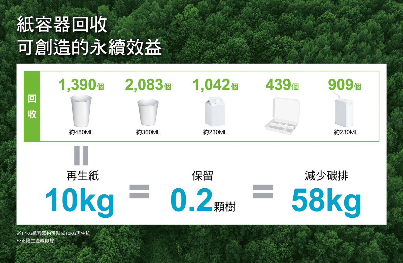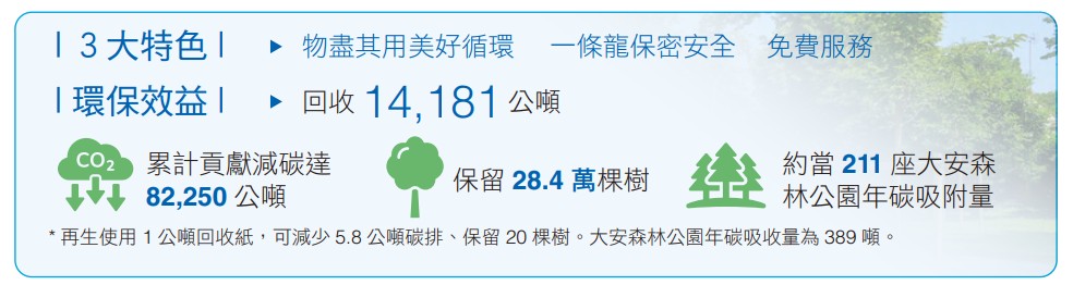 *註:每使用1噸再生紙漿,可減少砍伐20棵樹。