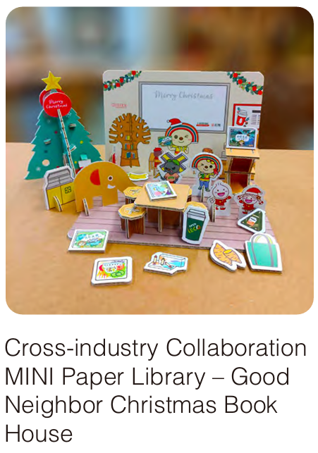 Paper Studio collaborated with the Uni-President Good Neighbor Cultural and Educational Foundation to launch the Good Neighbor Christmas Book House, featuring a paper library and MINI Paper Studio products, including Little Desk, Paper Tree Chair, Display Bookshelf, Little Elephant, and Dandelion Little Pu and LittleYing dolls, to promote awareness of recovered paper's potential among children through interactive play.
