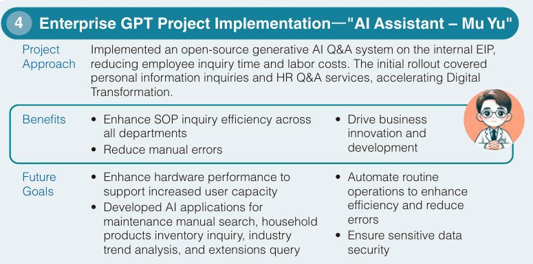 CLC implemented the Power BI interactive business intelligence visualization system to enhance decision-making efficiency and accuracy. In 2024, CLC partnered with the Industrial Development Administration, Ministry of Economic Affairs, to launch the "CLC iPAS Industrial Control Cybersecurity and Smart Manufacturing Supply Chain Program". This program integrated the Information Department, Information Security Center, papermaking, Cogeneration, and environmental units, and collaborated with 10 suppliers to train industrial cybersecurity and smart manufacturing professionals, strengthening industry-wide smart manufacturing and industrial control cybersecurity capabilities to support industry transformation.