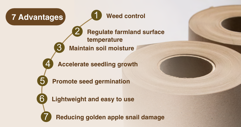CLC eco weed control paper replaces plastic mulch films, reduces pesticide residue in soil, and improves farmland permeability and moisture retention. Field tests showed a 23-fold reduction in weed growth, significantly decreasing manual weeding in organic rice cultivation. This enhanced agricultural resilience to climate change and ensured sustainability and food security.